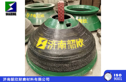 我們濟南韶欣耐磨材料有限公司,經(jīng)過多年研究試驗,成功開發(fā)出新型復合鑲鑄圓錐破碎機襯板(動、靜錐),經(jīng)過客戶現(xiàn)場的大量實驗,我們濟南韶欣耐磨材料有限公司生產(chǎn)的新型復合鑲鑄圓錐破碎機襯板(動、靜錐),在苛刻的采礦現(xiàn)場操作環(huán)境中的運行實踐證明:在相同破碎比或產(chǎn)品粒度條件下,使用壽命達到我公司普通材質產(chǎn)品壽命的2-3倍。